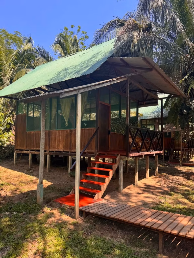 Overnight at our riverside lodge, lulled by the night sounds of the Amazon.
