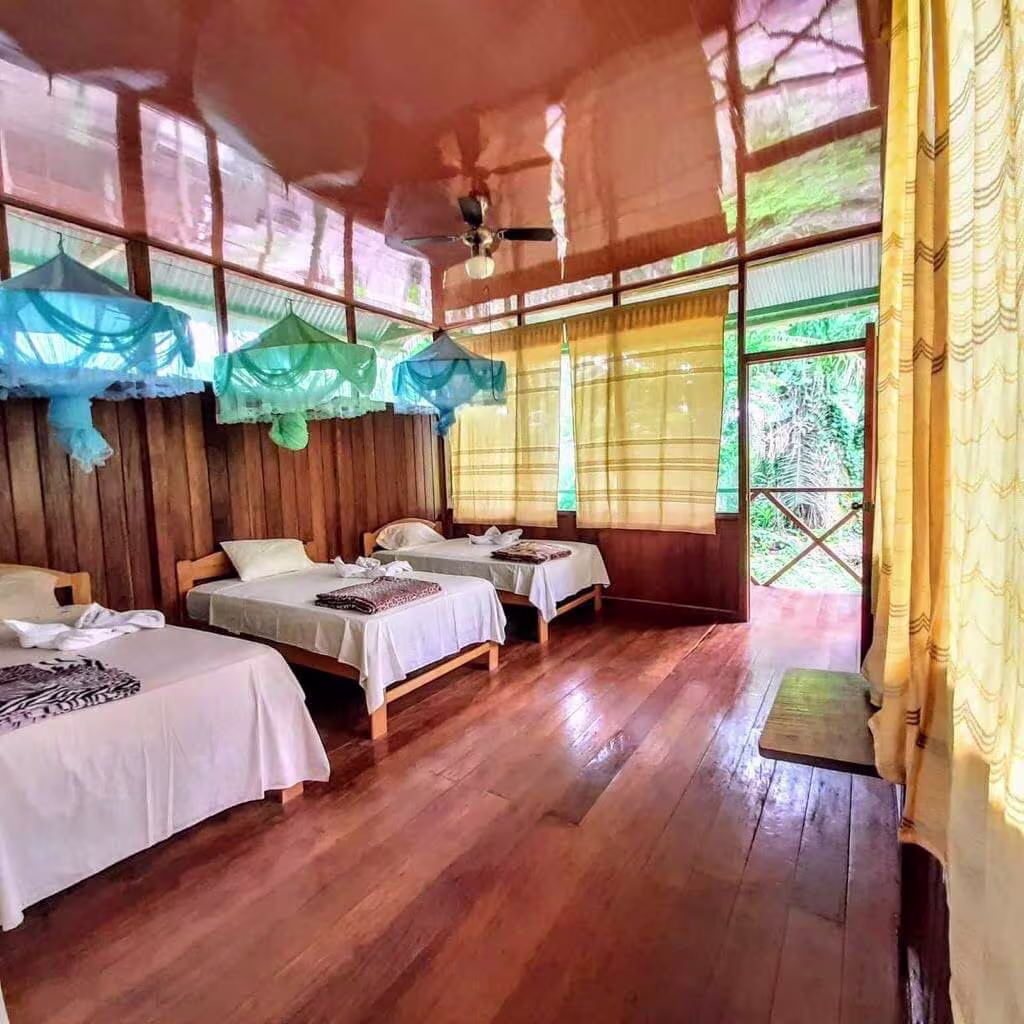 This is an “All inclusive tour from pick up till drop off”Pick up from (Airport, bus station or hotel)04 Nights accommodation in bungalow with private bathroom1 Ticket entrance to natural reserve 1 to (Sandoval Lake)1 Professional bilingual guide in the jungle1 Motor boat transportation for all tripsBreakfast (4) Dinner (4) Lunch (4)All activities listed in the itineraryPurified Water 24 hours (To recharge your canteen)Wellingtons (Rubber boots)No additional payment for single room or (Solo traveler)Storage room for large luggageFirst aid kitDrop off to (Airport or bus station)